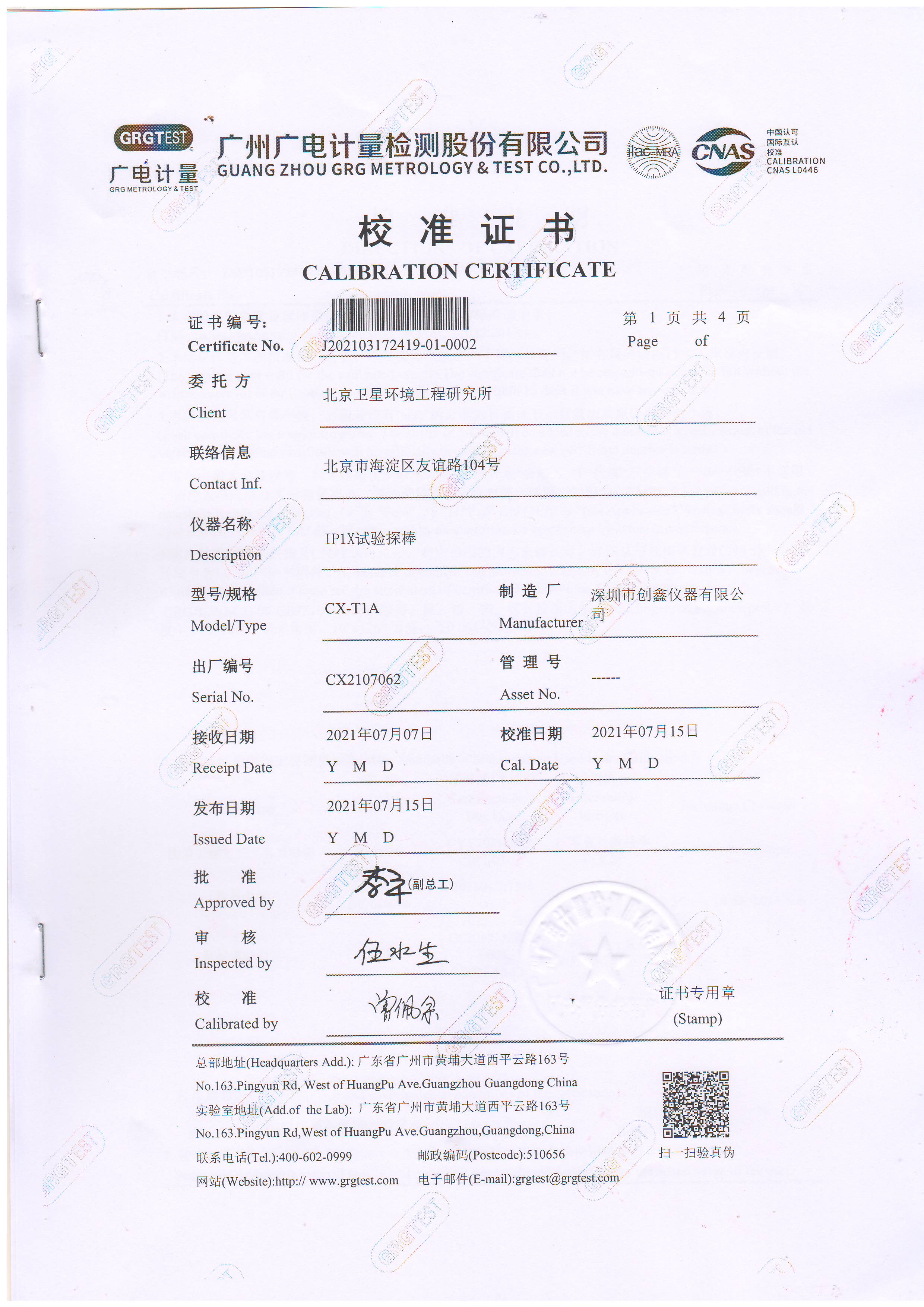 符合GB4706、GB2099、GB4943、GB4208IPX2、GB3883圖1、IEC61032圖2試具B、IEC950圖2A、IEC60884、IEC60335、GB/T16842試具B、UL507、EN60529圖1、UL1278圖8.4等標(biāo)準(zhǔn)要求。用于防止手指觸及或防觸電檢驗(yàn)的防護(hù)檢驗(yàn)。