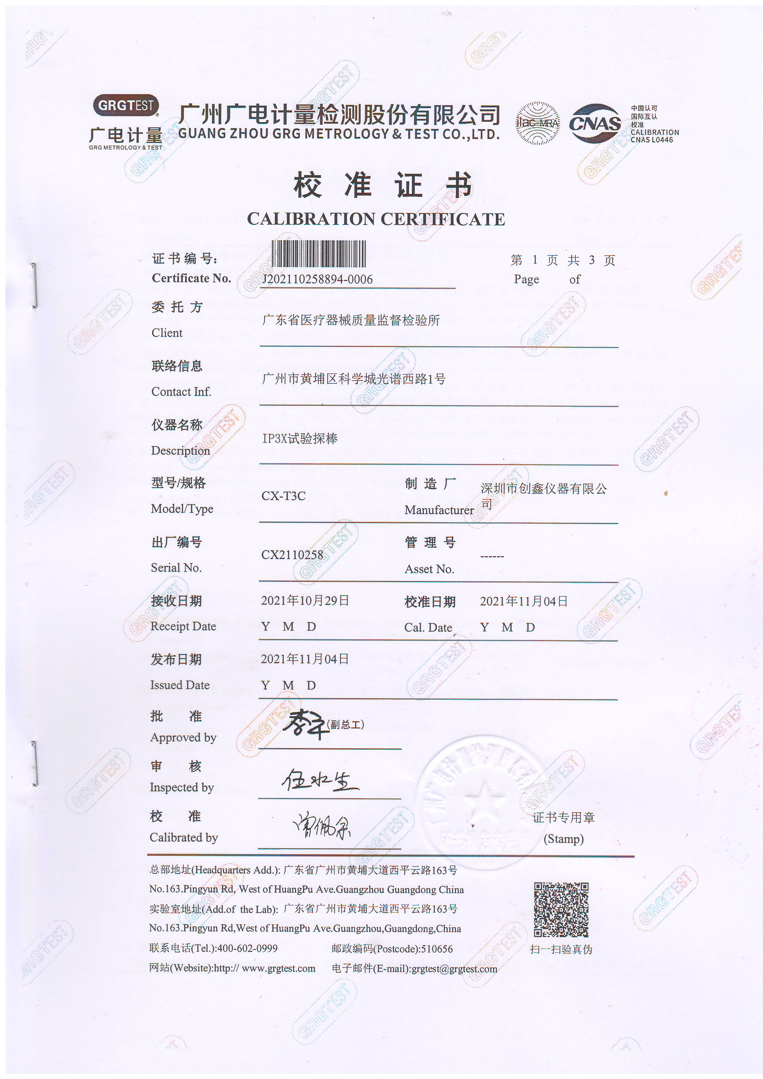 慶祝我司與2021年11月廣東省醫(yī)療器械質(zhì)量昨檢驗(yàn)所合作成功