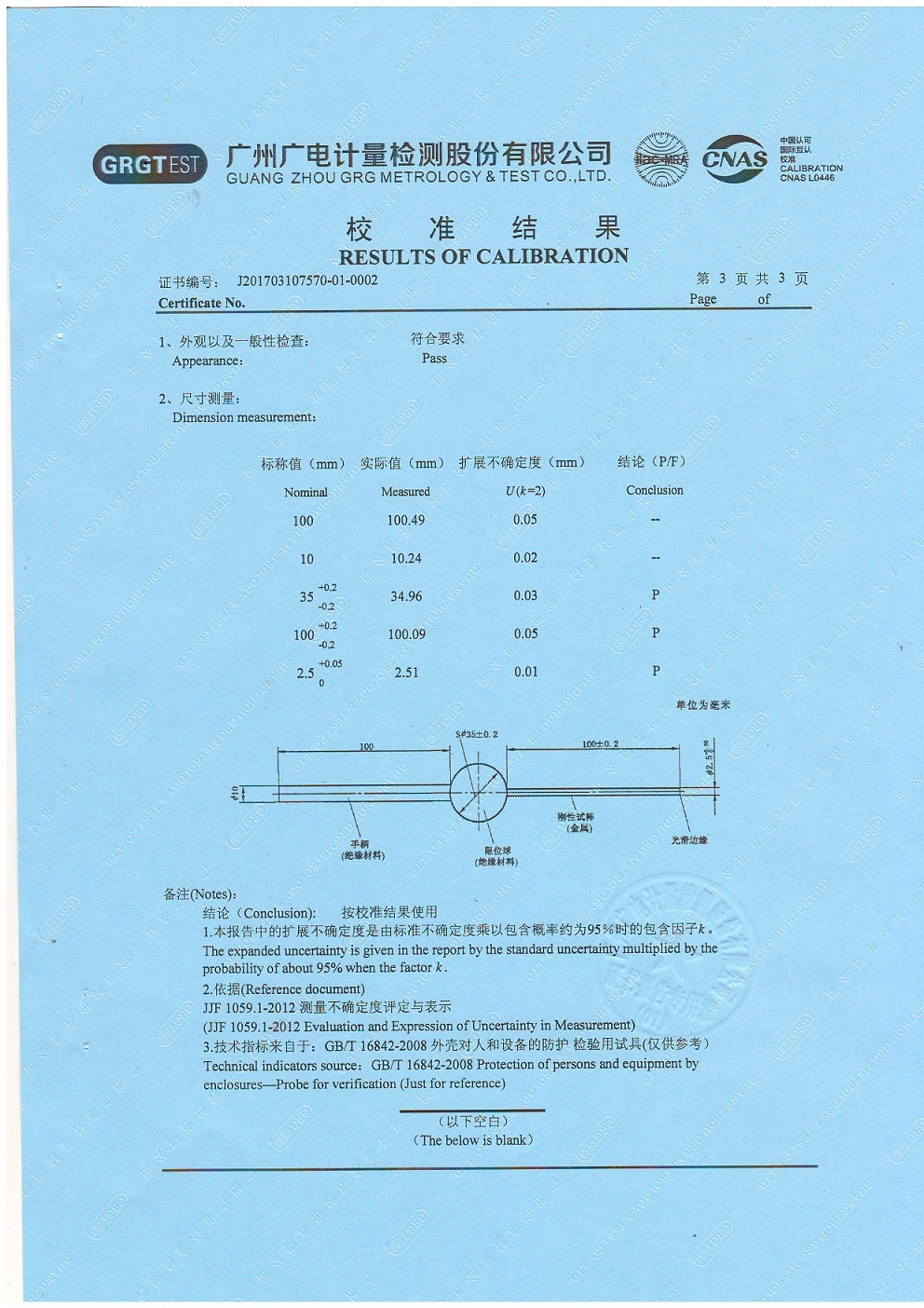 IP3X試驗探棒(試具C)權威機構計量證書