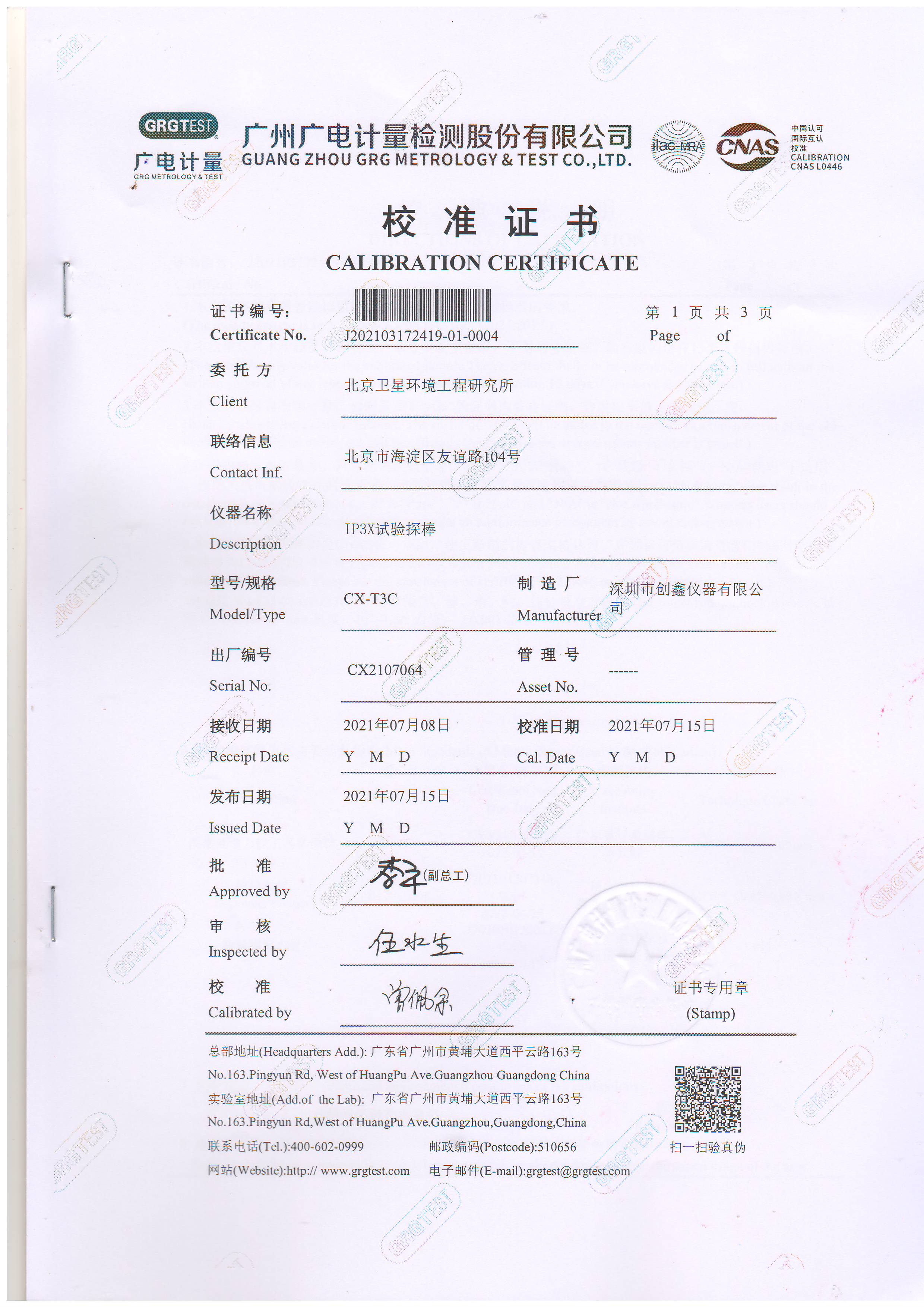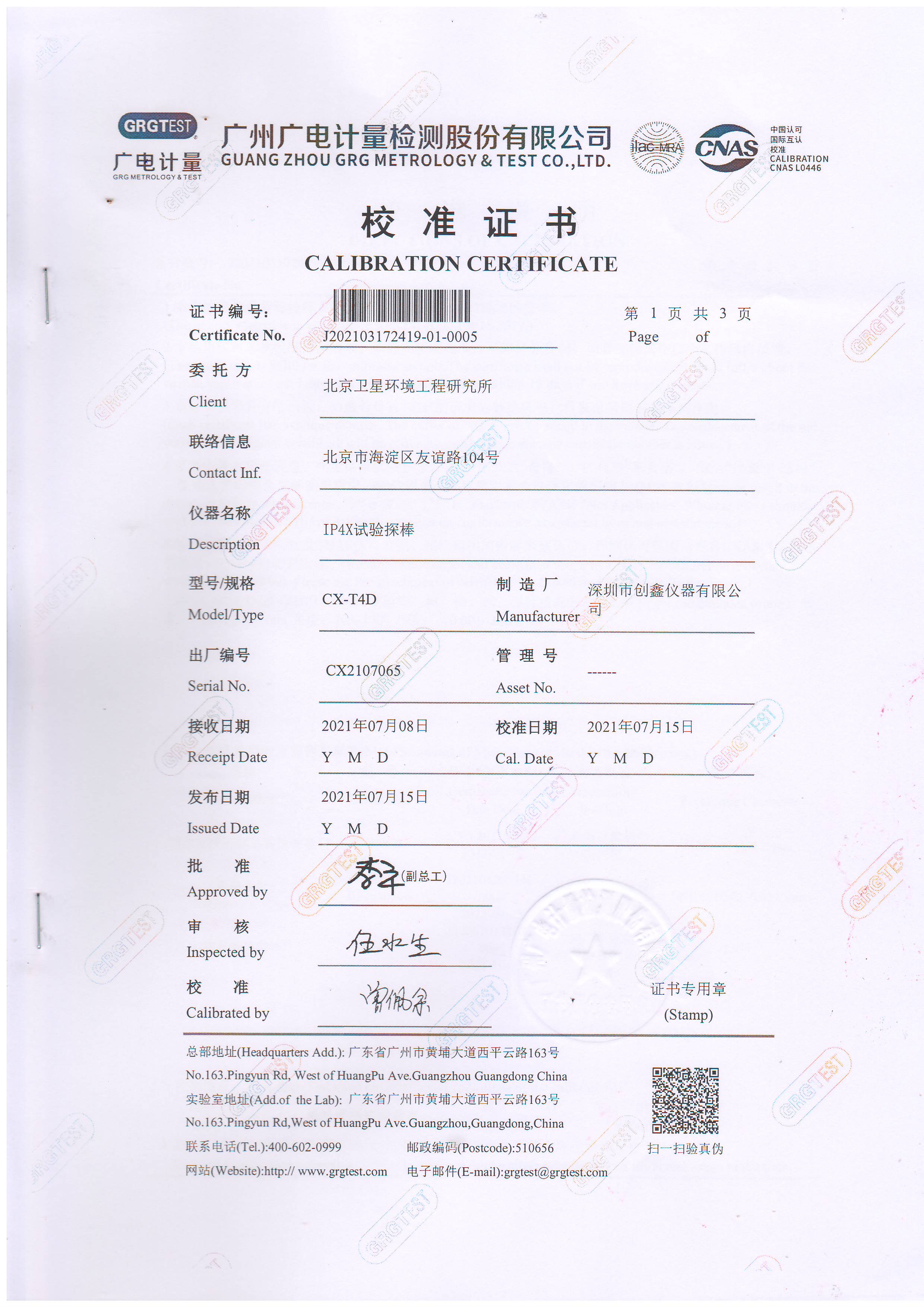 符合GB4706、GB2099、GB4943、GB4208IPX2、GB3883圖1、IEC61032圖2試具B、IEC950圖2A、IEC60884、IEC60335、GB/T16842試具B、UL507、EN60529圖1、UL1278圖8.4等標(biāo)準(zhǔn)要求。用于防止手指觸及或防觸電檢驗(yàn)的防護(hù)檢驗(yàn)。